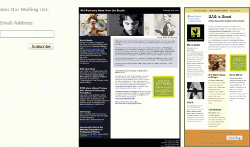 The studio produces a newsletter every few weeks. We try to give brief updates of what is going on here, but also include information that we’ve read and want to share — because we believe it my be interesting to you too! Recent newsletters have included tips from Cool Hunting (coolhungting.com), Pantone’s Color Lab (pantone.com) and AIGA (the professional association for design at aiga.org). Future issues will continue to keep you informed of what is happening here and around us.